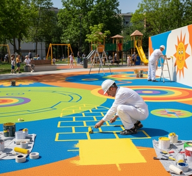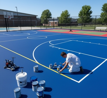 Nossa equipe é formada por profissionais treinados em pintura esportiva e aplicação de tintas antiderrapantes.
